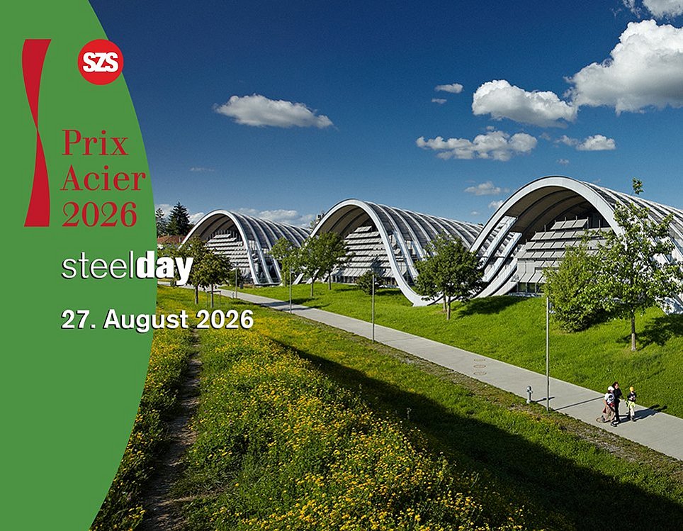 09.02.26 - Das SZS verleiht 2026 wieder den Prix Acier. Die Ausschreibung läuft noch bis zum 7. April, die Siegerehrung findet am 27. August 2026 am steelday+ statt.